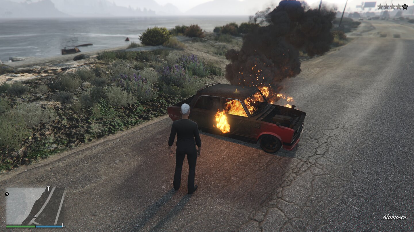 Dieser Service ist allerdings nur dann kostenlos, wenn ihr nicht direkt an der Zerstörung des Vehikels schuld seid. Wer die eigene Karre aus Jux und Dollerei selbst hochsprengt, wird zur Kasse gebeten und landet auf der Fahndungsliste der lokalen Polizei!