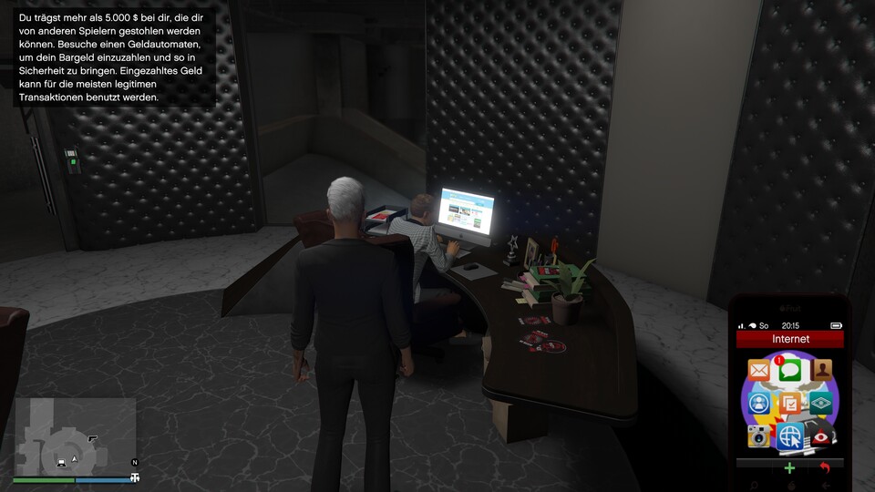 Viele Tätigkeiten in Los Santos sind in der Moderne angekommen und überweisen direkt erarbeiteten Lohn auf euer Konto. Habt ihr dennoch mal Bargeld in der Tasche, sichert ihr das vor räuberischen NPCs und ballerfreudigen Mitspielern, indem ihr die Kohle bequem per Handy auf euer Konto überweist.