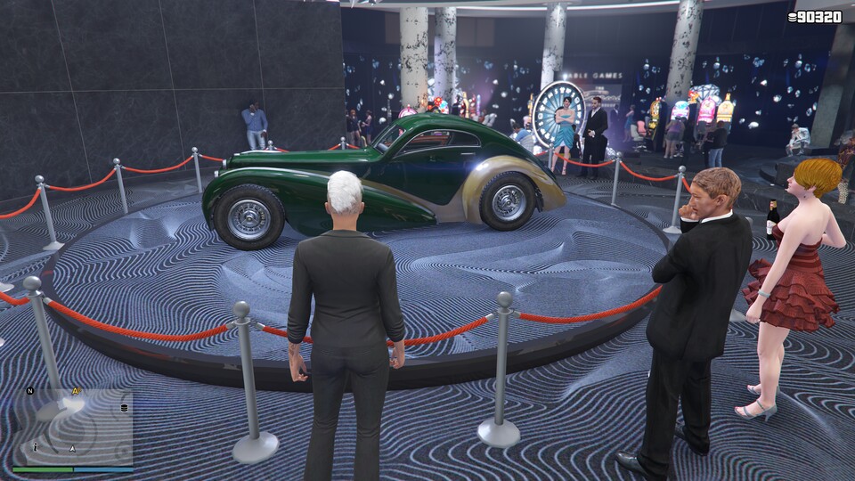 Einmal alle 24 Stunden dürft ihr im Diamond Casino das Glücksrad nutzen: Als Gewinn winken euch Erfahrungspunkte, neue Klamotten, Geld, Casino-Jetons, Rabatte oder sogar das Fahrzeug der Woche – das steht übrigens auf dem Podium nahe des Glücksrads.