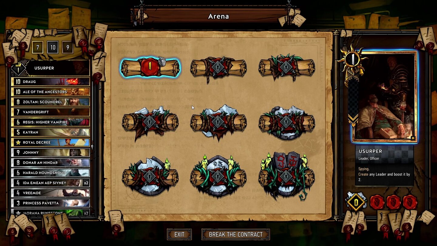 Ihr könnt den Modus jederzeit verlassen, um später an der entsprechenden Stelle mit dem Erfüllen der Verträge fortzufahren. Je besser ihr seid, desto besser fallen am Ende die Belohnungen für die Runde aus. Ein Kartenfass ist das Minimum, unabhängig davon, wie ihr euch schlagt. Schafft ihr es aber, alle neun Verträge zu erfüllen, erhaltet ihr eine zufällige Legendäre Premium-Karte.