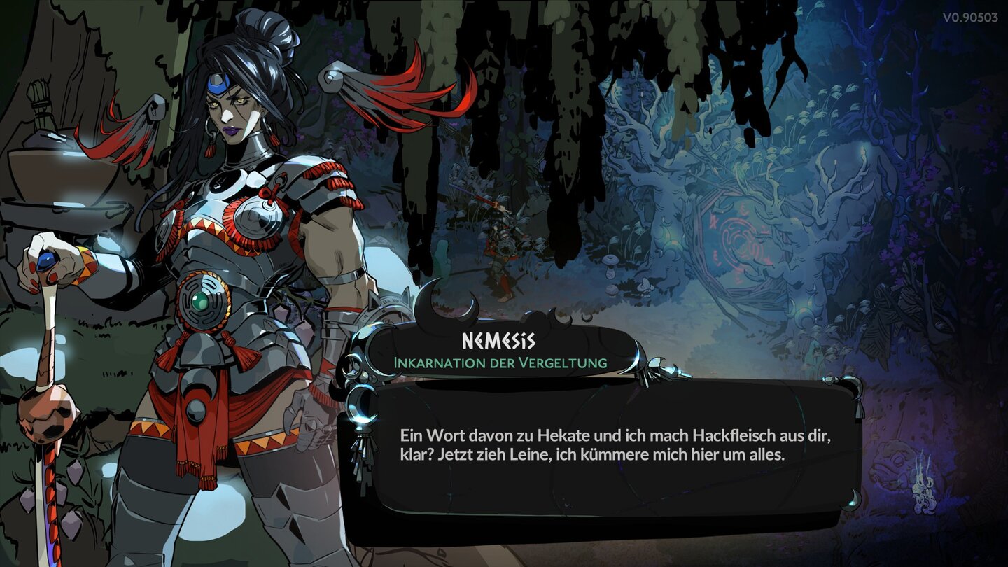 Während Nemesis, die Inkarnation der Vergeltung, anfangs unglaublich kaltschnäuzig und feindselig rüberkommt, verstehe ich mit der Zeit, dass auch sie von ihrem Hass auf Chronos angetrieben wird.