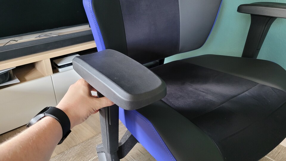 Die 4D-Armlehnen sind unglaublich flexibel. Sie lassen sich in nahezu jeder Hinsicht so anpassen, wie ihr sie haben wollt. Mit der großen Taste direkt unter der Armlehne verstellt ihr sie innerhalb von Sekunden in der Höhe.