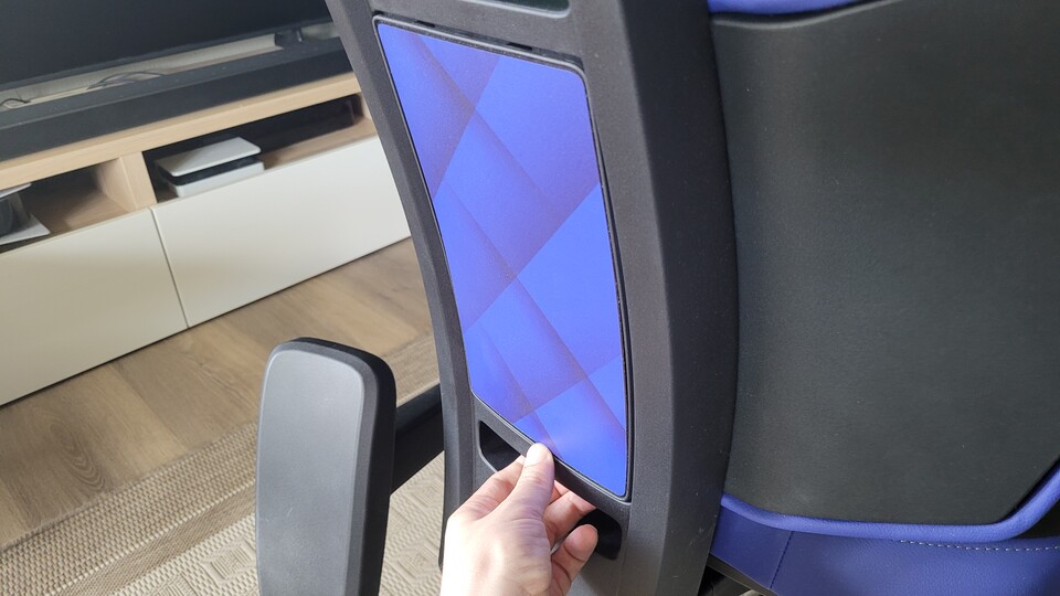 Hinter dem untersten Panel auf der Rückseite des Stuhls liegt die versteckte und fest verbaute Lordosenstütze. Sie unterstützt den unteren Rücken, während ihr arbeitet oder spielt. Habt ihr sie eingestellt, verschwinden die Drehregler wieder unsichtbar unter dem abnehmbaren Panel. Ich finde die Lösung richtig gut! Sonst sieht man Oft diese kleinen Kissen, die um den Stuhl geschnallt werden. Hier bleibt die Optik des Stuhls absolut Clean und nichts kann verrutschen. Klasse!