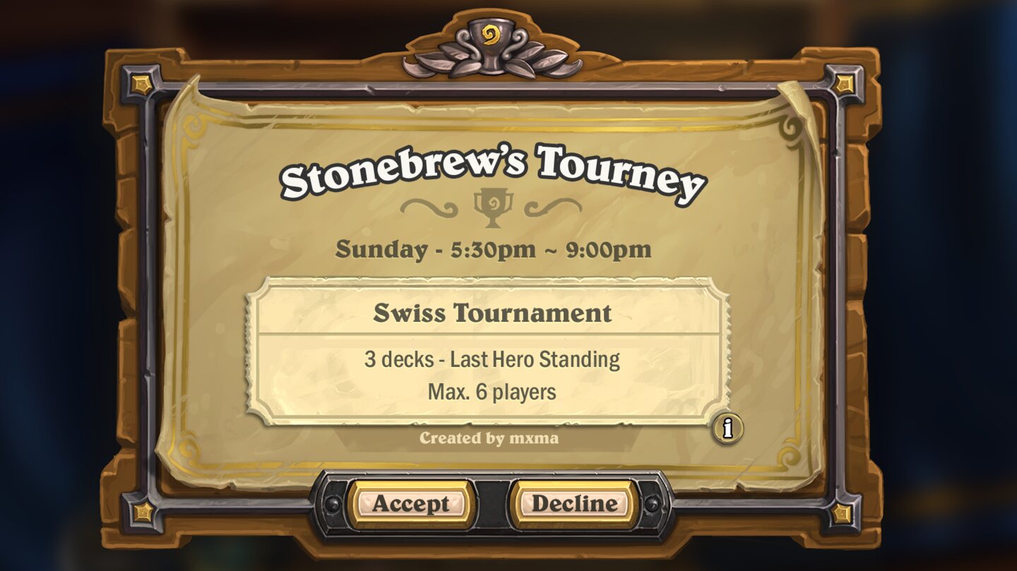 Die mechanisch vielleicht größte Neuerung sind jedoch die selbst erstellbaren Turniere, mit denen Blizzard Hearthstone ein Stück mehr in die Hände der Spieler legen möchte. Mit dem Turnier-Tool lassen sich relativ einfach Wettkämpfe aufsetzen und austragen, auch wenn nur privat unter Freunden gezockt wird.