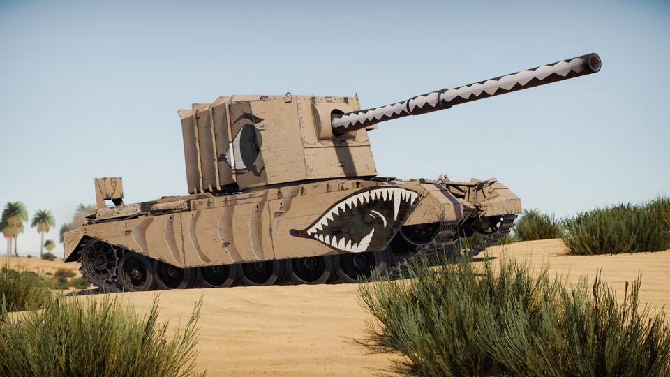 Damit könnt ihr die meisten Feinde auf eurem Rang gut bekämpfen. Die geringe Mündungsgeschwindigkeit ist allerdings ein Problem, wenn ihr gegen höherrangige Tanks, wie den Matilda, kämpft. Und freilich ist die geringe Geschwindigkeit des Landschlachtschiffs ein Nachteil, fahrt also direkt auf die Front zu und hofft, dass ihr irgendwann ankommt.