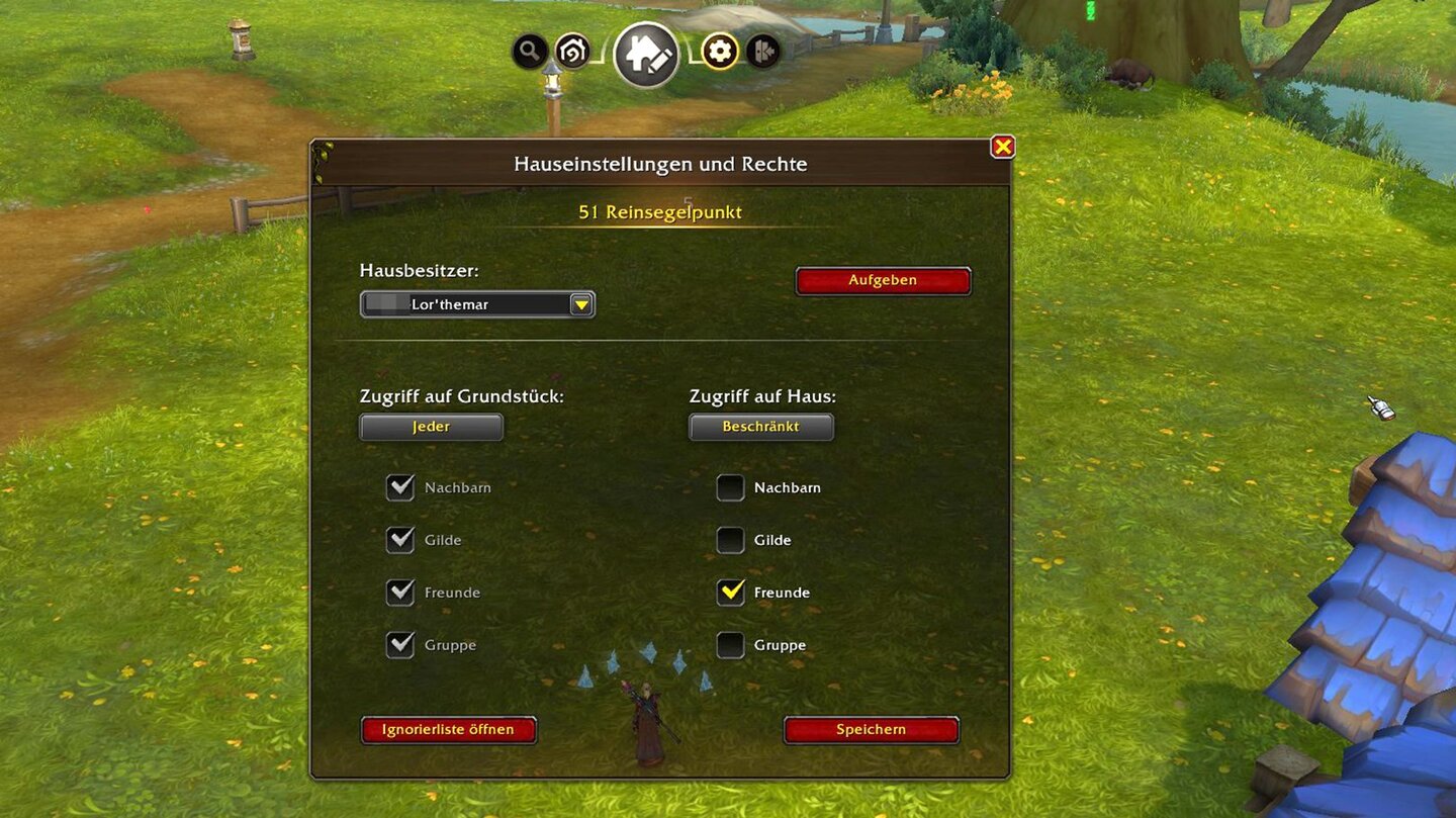 Dabei könnt ihr den Zugang zum Grundstück und zum Haus separat definieren. Zur Auswahl stehen die Kategorien Nachbarn, Gildenmitglieder, Freunde oder Gruppe. Standardmäßig ist euer Grundstück für jeden offen, während euer Haus für Fremde erst einmal verschlossen bleibt.