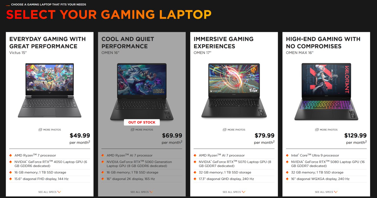 Dafür erhalten sie ein aktuelles OMEN- oder Victus-Notebook, technischen Support rund um die Uhr und – das soll wohl das Hauptverkaufsargument sein – die Möglichkeit, das Gerät alle 12 Monate gegen ein neues Modell auszutauschen.