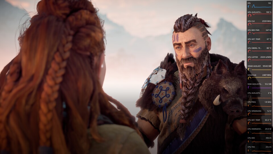 Der Sprung ist sogar größer, als ich erwartet hatte! Mit einem Zuwachs von ca. 47 % hatte ich hier nicht gerechnet, denn Horizon Zero Dawn nutzt noch FSR 1. Im Stillstand sind die Unterschiede zum normal gerasterten Bild kaum wahrnehmbar. Während schneller Bewegungen sind Veränderungen für geübte Augen jedoch bemerkbar.
