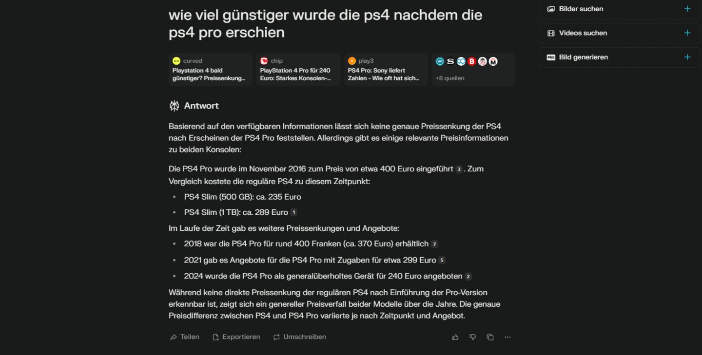 Trotzdem ist es meiner Meinung nach schön zu wissen, dass Perplexity auch mal zugibt, wenn es keine klare Antwort zur gestellten Frage hat.