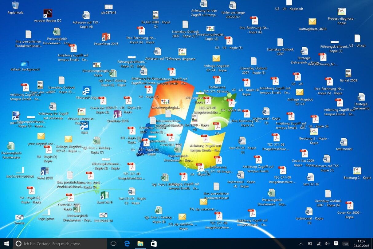 - Die Desktop-Icons, die euren sorgfältig gewählten Hintergrund verdecken.