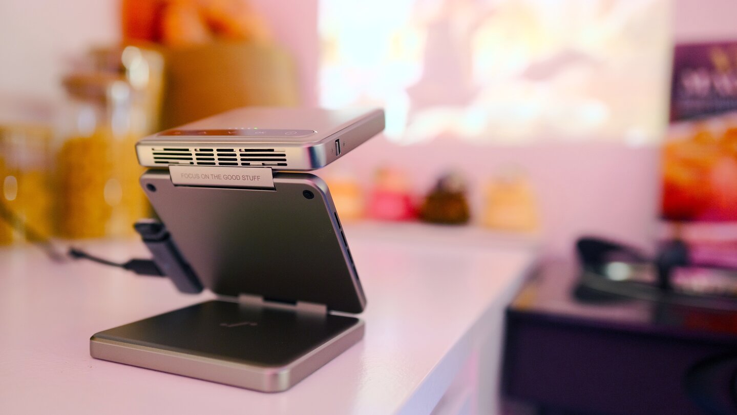 Der Aurzen Zip ist ein kleiner faltbarer Mini-Projektor mit eingebautem Akku. Er ist nur etwa so groß wie eine Haselnusstafel und verbindet sich kabellos und ohne lokales Netzwerk mit Handys, Tablets, Laptops oder PCs. Mit einem Wireless-HDMI-Adapter ist es sogar möglich, jedes HDMI-fähige Gerät zu verbinden, wie etwa eine Nintendo Switch 2.