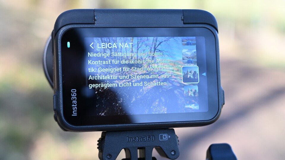 Der große Star dieser Action-Kamera sind die Farbmodi. Die Insta360 Ace Pro 2 wurde in Zusammenarbeit mit dem deutschen Traditionsunternehmen Leica entwickelt. Somit stehen euch in den Einstellungen die berühmten Farbmodi »Vivid«, »Leica B&W«, »Kontrast Leica Eternal«, »Leica Natural« und weitere zur Verfügung.
