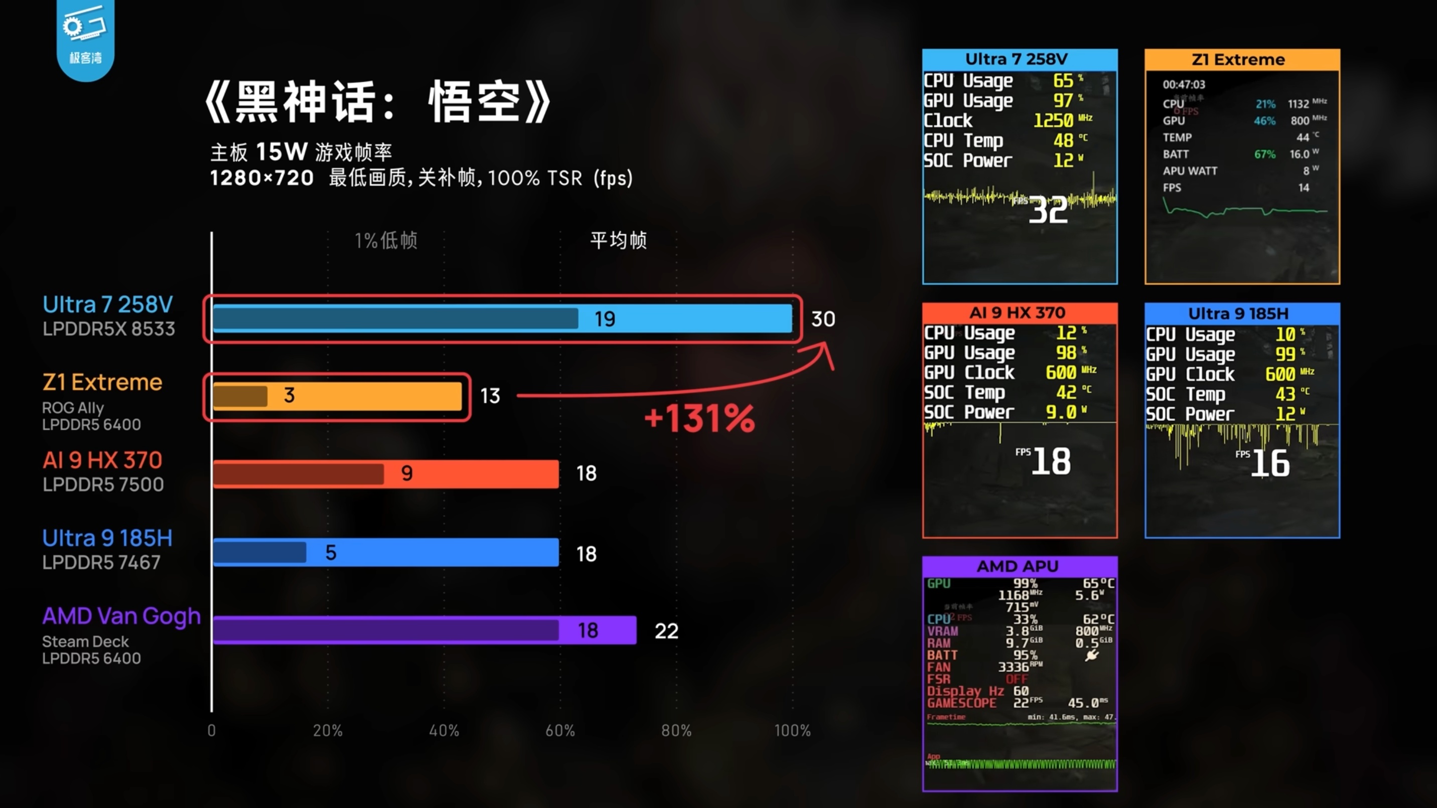 Im Detail: In frühen Benchmarks, die vom YouTuber 极客湾Geekerwan durchgeführt wurden, zeigt der Core Ultra 7 258V mit seiner Xe2-Grafik beeindruckende Leistungssteigerungen gegenüber AMDs Ryzen Ai 9 HX und Z1 Extreme.