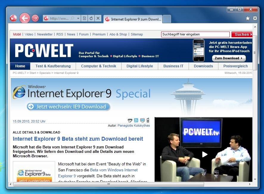Die neue schlanke Oberfläche soll laut Angaben von Microsoft die Websites selbst mehr in den Mittelpunkt rücken. Im Alltag nutzen PC-Anwender Applikationen und Websites. Beim Aufruf von Websites dient der Browser nur als Mittel zum Zweck. Mit dem Internet Explorer 9 kann der Anwender verstärkt den Fokus auf die Websites selbst legen und den Browser Drumherum vergessen.