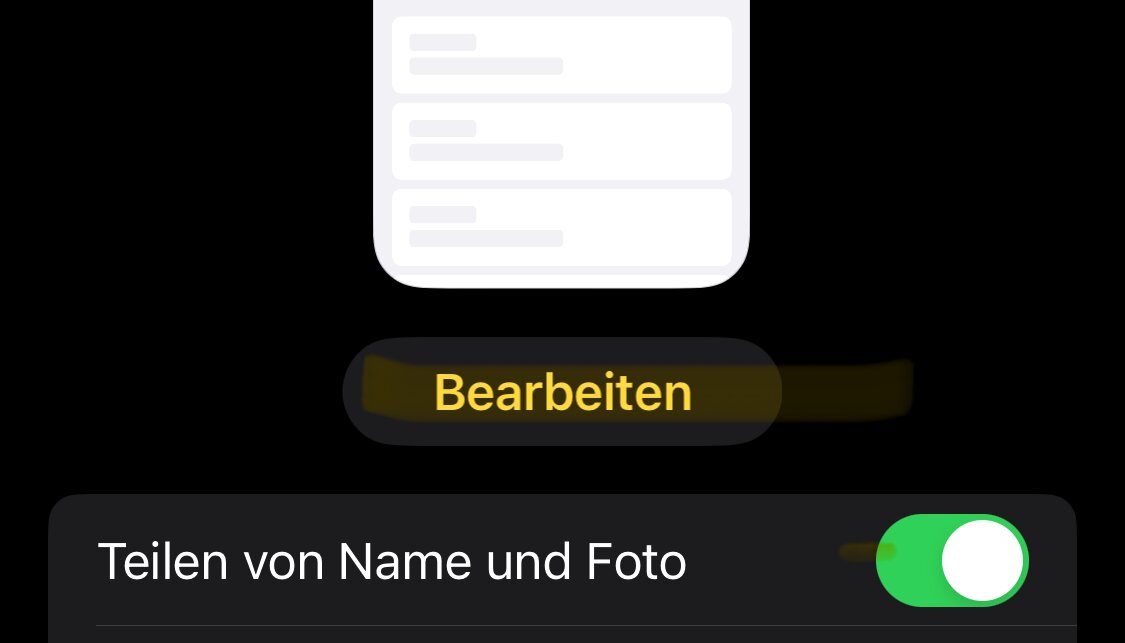 - Ist der Schalter zum Teilen von Name und Foto versehentlich deaktiviert? Gehe zu deinem eigenen Kontakteintrag und prüfe, ob unter Kontaktfoto und Poster der Schalter zum Teilen von Name und Foto aktiviert ist.