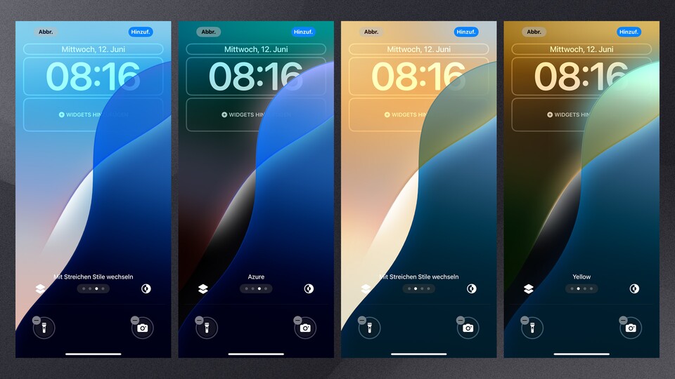 - Passt anschließend den Sperrbildschirm nach belieben an und wählt anschließend oben rechts »Hinzufügen« aus.