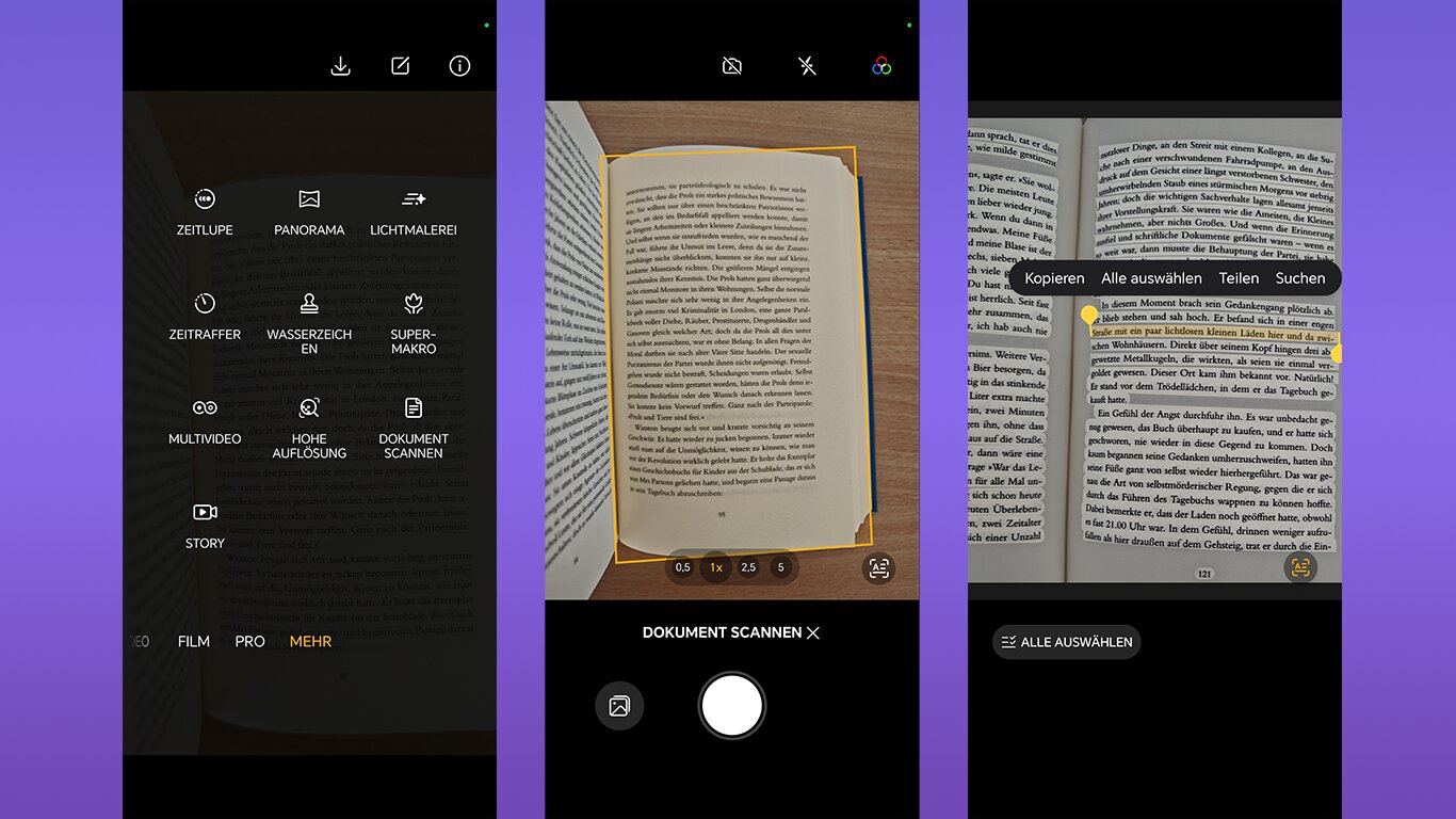 Mit der Dokumenten-Scan-Funktion der Kamera: Auch bei Android-Handys könnt ihr direkt über die Kamera-App Textinhalte erfassen, jedoch funktioniert es nicht bei jedem Gerät gleich.