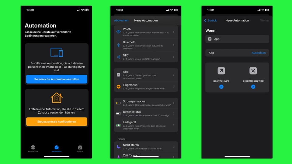 - Öffnet die Kurzbefehle-App und wählt den Reiter