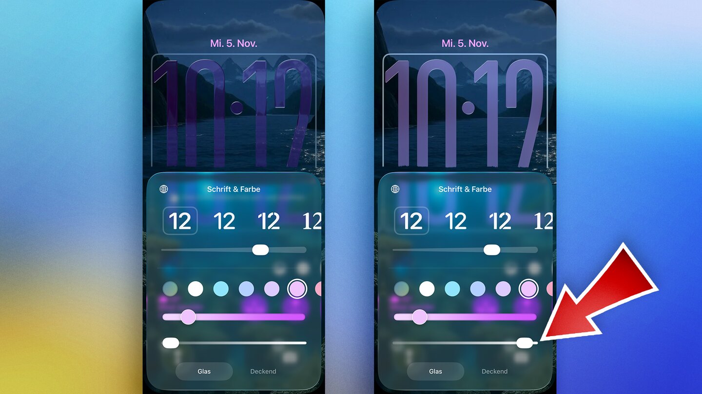 Apple erweitert die Anpassungsmöglichkeiten für den Sperrbildschirm: Mit einem neuen Schieberegler könnt ihr den Liquid Glass-Effekt beim Sperrbildschirm-Uhrendesign präziser einstellen, wenn ihr den »Glas«-Effekt nutzt.