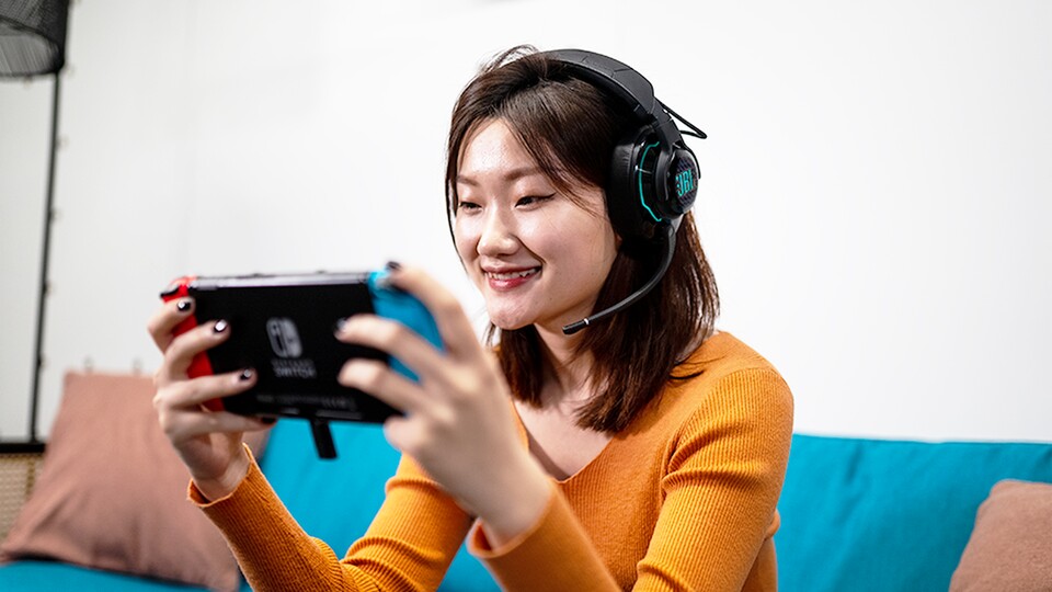 Durch die JBL QuantumSPHERE 360-Technologie mit integriertem Head-Tracking und personalisierter Audiokalibrierung bekommt ihr ein immersives 3D-Sounderlebnis. Jede Bewegung eures Kopfes wird in den Klang integriert, wodurch ihr Gegner präziser orten könnt als je zuvor. Dieses Feature verschafft euch auf dem PC einen echten Vorteil.