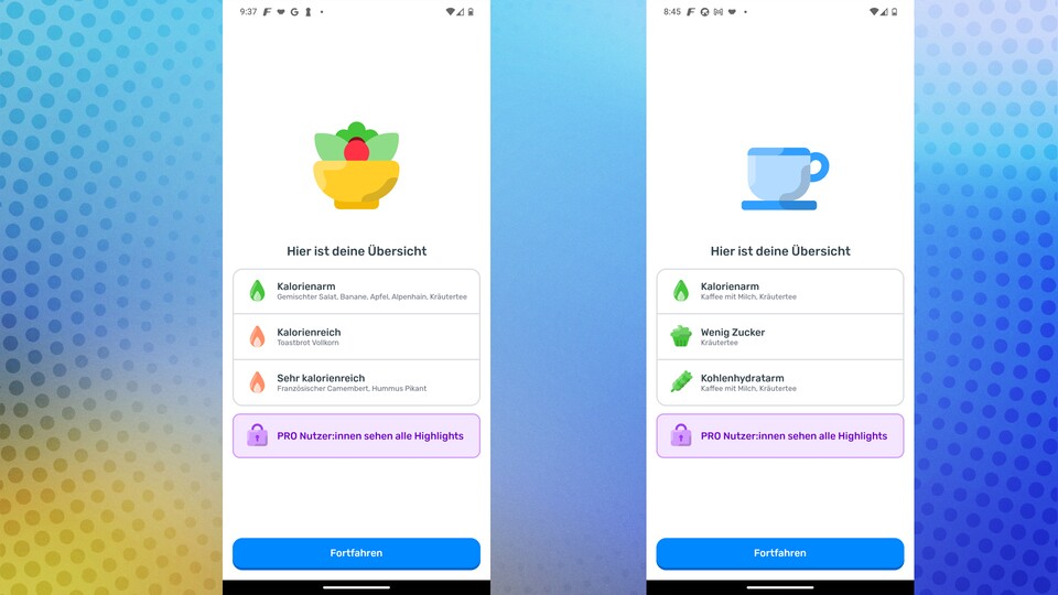 Die plumpe Einteilung in rot und grün nach jedem Lebensmitteleintrag kann irreführend sein. Doch noch bedenklicher finde ich, dass die App mich nicht darauf hinweist, wenn ich zu wenig gegessen habe. Am Ende des Tages bleibt eine Gesamtkalorienzahl, die nicht weiter kommentiert wird. Dass eine für eine Zeit stark verminderte Kalorienaufnahme zu ungewollten Nebenwirkungen führen kann, bleibt ein Onboarding-Screen, den ich schnell weggedrückt habe.