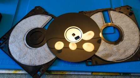 - Wir ersetzen ihn mit einem passenden Stück der dünnen Kunststoffscheibe aus dem Inneren einer Diskette. Das Material blockt fast vollständig das sichtbare Licht, lässt Infrarot aber weitgehend durch.