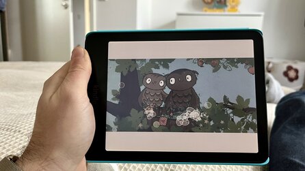 Lediglich das vergleichsweise hohe Gewicht von 214 Gramm (158 Gramm beim normalen Kindle) könnte bei jüngeren Kindern für Ermüdungserscheinungen sorgen. Bei uns lag das Gerät aber ohnehin auf dem Boden, einer Decke oder im Schoß.