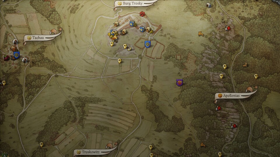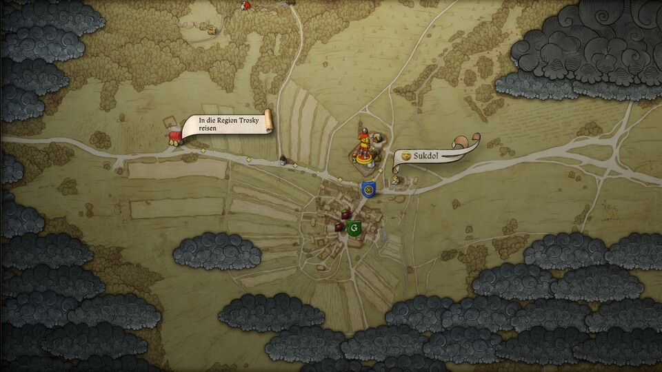 Die erste Quest von Begegnungen mit dem Tod startet direkt südlich von Burg Trosky in der gleichnamigen Region. Befindet ihr euch in Kuttenberg, müsst ihr zunächst in das erste Gebiet zurückkehren. Reist dazu zum westlichen Rand der Karte. An der Straße findet ihr ein Lager mit einem Kutscher, der euch nach Trosky fährt.