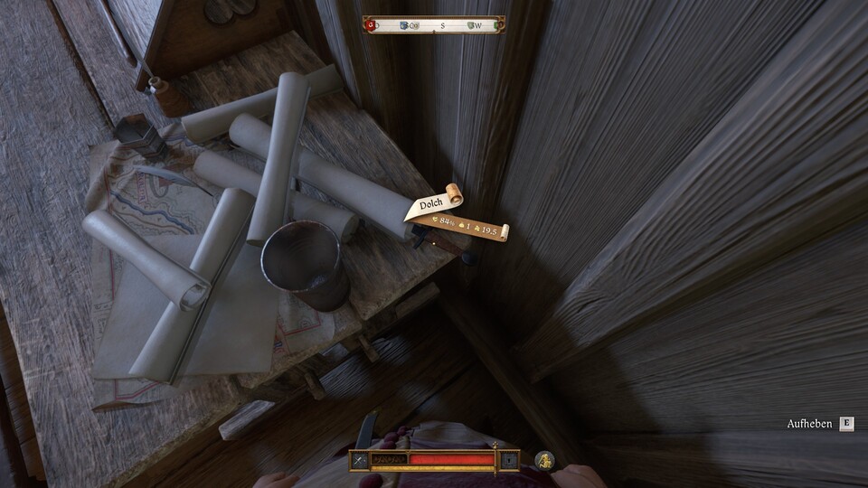 Da Heinrich vor der Sitzung alle Waffen abgenommen werden, müsst ihr diesen Dolch an euch nehmen und ausrüsten. Danach könnt ihr erst einmal weiter als Mundschenk arbeiten. Irgendwann wechselt die Szene und ihr spielt als Godwin, der sich auf einer Versammlung von Wenzels Anhängern in Raborsch aufhält. Hier könnt ihr einfach die Quest spielen, ihr müsst auf nichts achten.