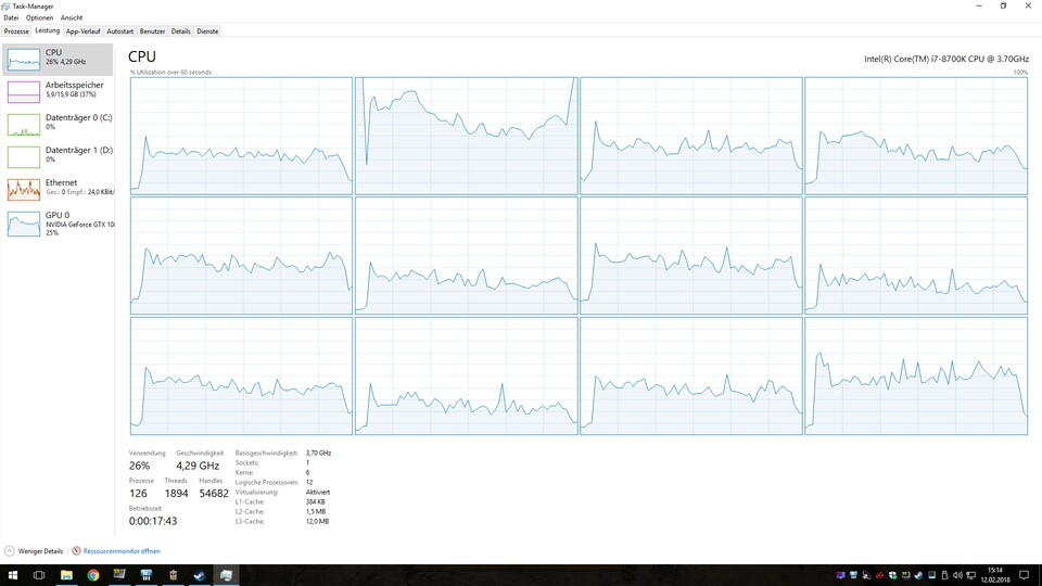 Um den Einfluss der CPU genauer zu überprüfen, haben wir uns die Kern- und Taktskalierung des Spiels mit einem Core i7 8700K näher angesehen und auch einen Test mit AMDs Ryzen 7 1800X durchgeführt. Dabei verwenden wir nicht die maximale Detailstufe, damit die für die Benchmarks verwendete Geforce GTX 1080 Ti nicht zu sehr zum Flaschenhals wird.