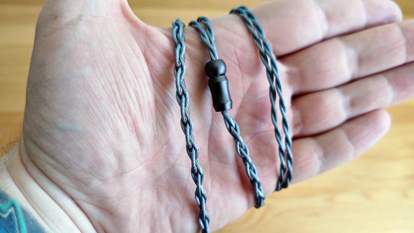 Das Kabel ist für IEMs ein elementarer Teil; Kabelbruch muss unter allen Umständen vermieden werden. Dementsprechend ist das Kabel nicht nur ineinander geflochten, sondern besitzt eine zusätzliche Ummantelung. Ihr müsstet es schon irgendwo einklemmen oder mit der Schere zu Leibe rücken, um es kaputtzumachen.