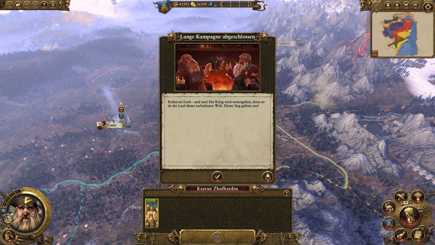 Und dennoch hat er sich beim Fachsimpeln mit den Kollegen schon lange nicht mehr so sehr über ein Spiel aufgeregt. Schuld daran ist ein harmloses Textfenster, mit dem Total War: Warhammer den Sieg in der Kampagne »feiert.