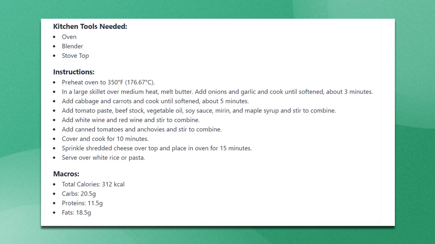 Das System von ChefGPT folgt allerdings auch hier einem Muster: Brate X und serviere Gemüse dazu