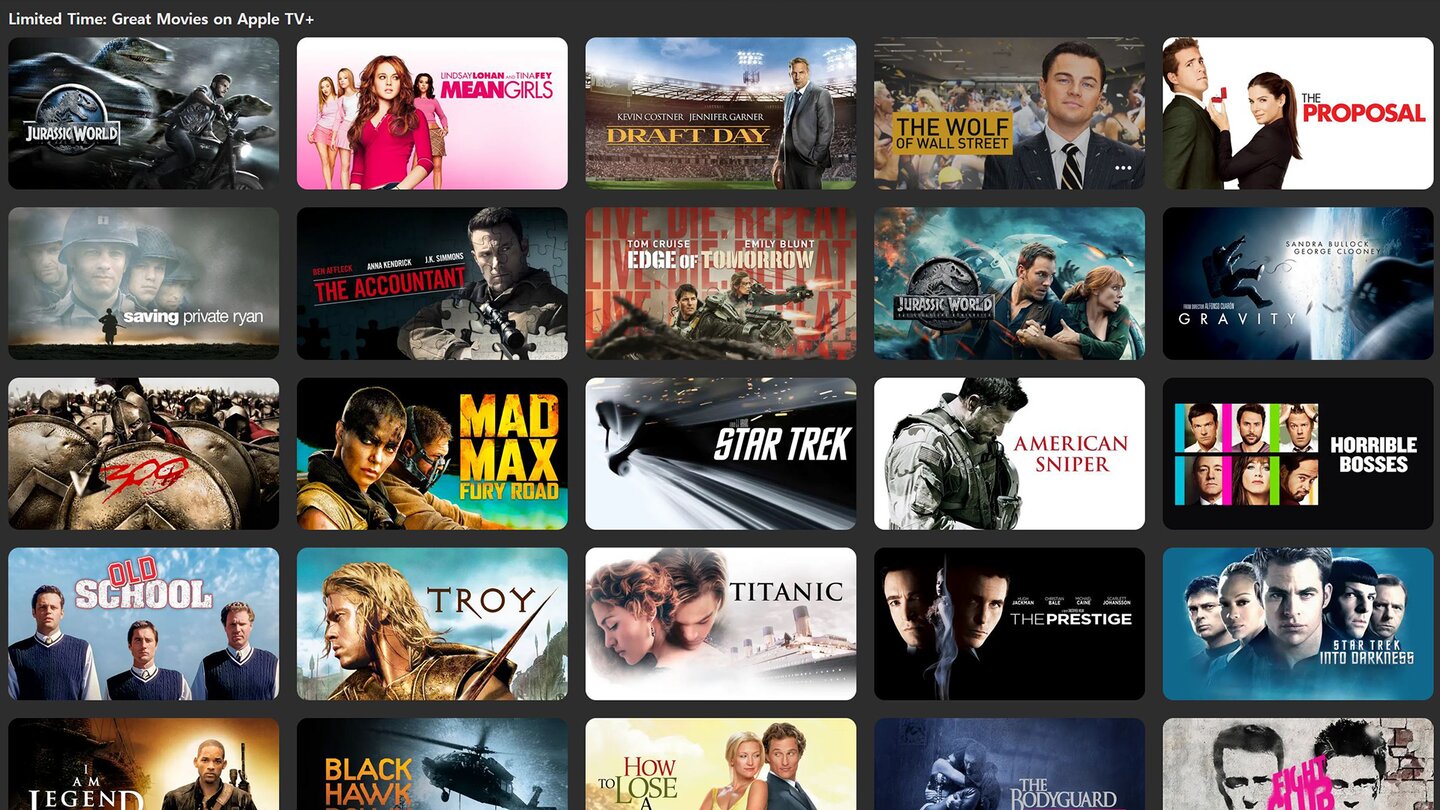 Neben den hochwertigen Eigenproduktionen sind viele Titel dabei, die man sich gerne wieder anschaut, vor allem mit verbessertem Bild und Ton (oder in 3D, sofern man Apples AR/VR-Brille besitzt).