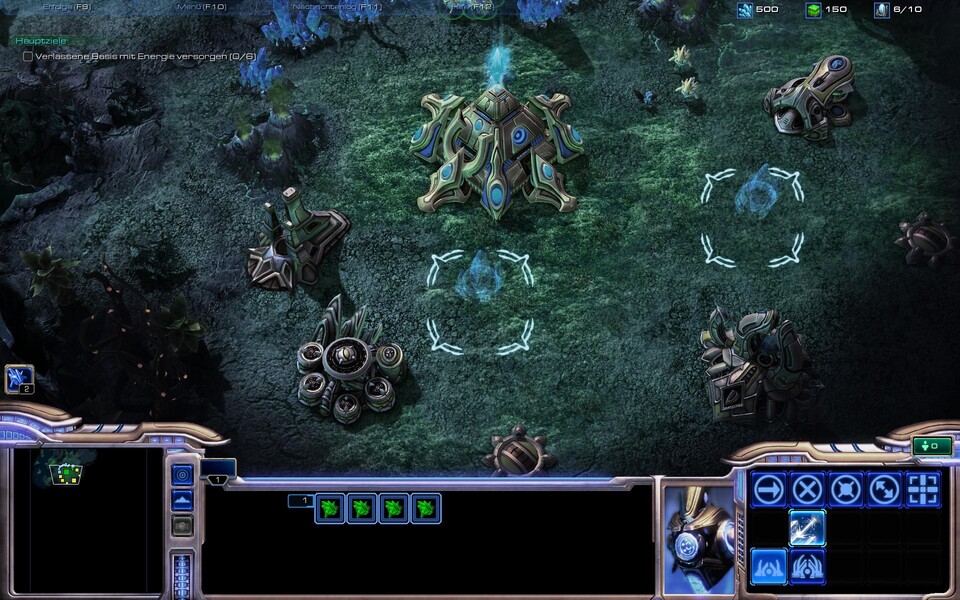 Missionsziele: Die verlassene Protoss-Basis mit Energie versorgen, alle 3 Bewahrer befreien
