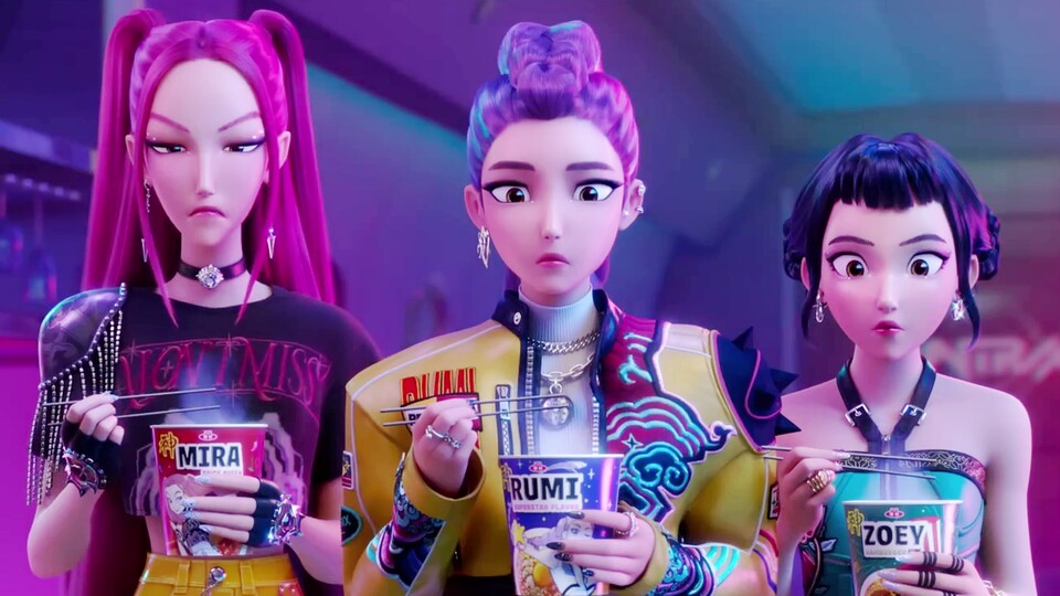Weil bestimmt nicht jeder von euch den Film gesehen haben dürfte: Hier trifft die Musikrichtung KPop auf Dämonenjagd, das Ganze wird mit Anspielungen auf echte KPop-Gruppen wie BTS und Blackpink aufgepeppt – und dazu kommt die schicke Optik der Sony Animation Studios, die schon die Spider-Verse-Filmen zum Hit gemacht hat.