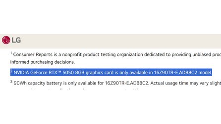 Erste Hersteller hatten bereits einige Infos auf ihren Webseiten veröffentlicht. So konnte man bei LG noch die Bestätigung lesen, dass die RTX 5050 mit 8-GB-VRAM kommen wird, während auf der chinesischen Webseite von Razer bereits ein Blade 16 mit RTX 5060 gelistet war. Auch Lenovo hatte bereits ein Gerät mit RTX 5050 angekündigt.