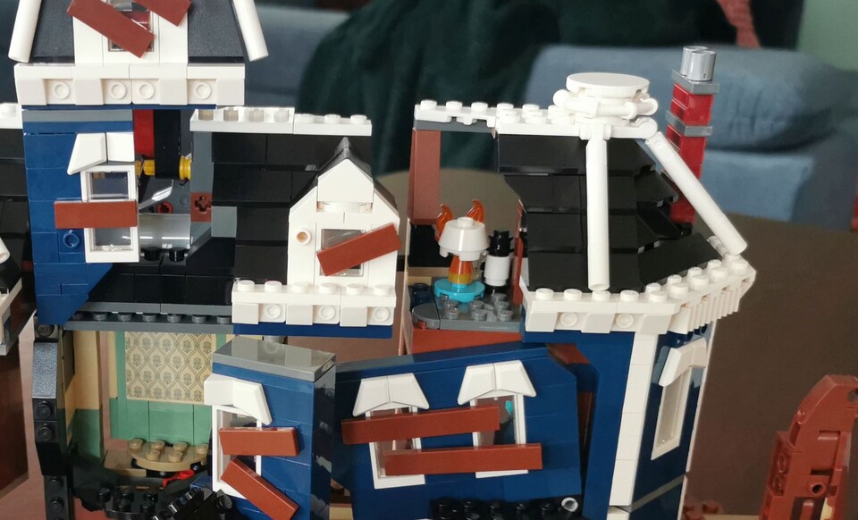 Das Set mit dem stolzen Preis von rund 280 Euro hat eine der ungewöhnlichsten und besten Funktionen verbaut, die ich in den letzten Jahren bei offiziellen Lego-Baukästen gesehen habe: Es verwandelt sich in eine bizarre Upside-Down-Version mit verschobenen Bauteilen und geöffneten Wänden.