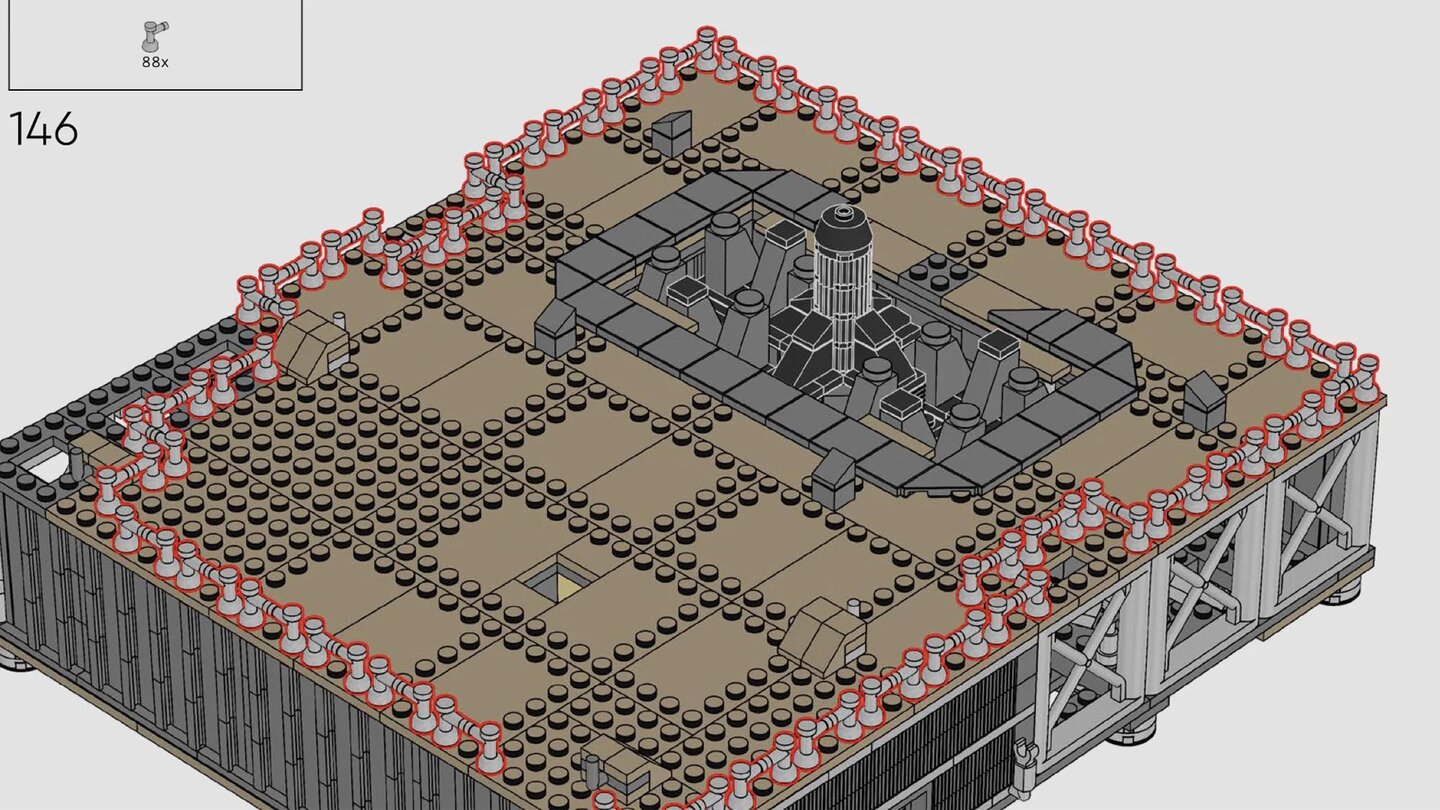 Auf dem Weg zum Liftoff müssen nämlich satte 88 Elemente des gleichen Typs in Form einer Brüstung angeordnet werden. Und wir alle kennen doch das Gefühl: Das muss auf den Mikrometer genau sein!