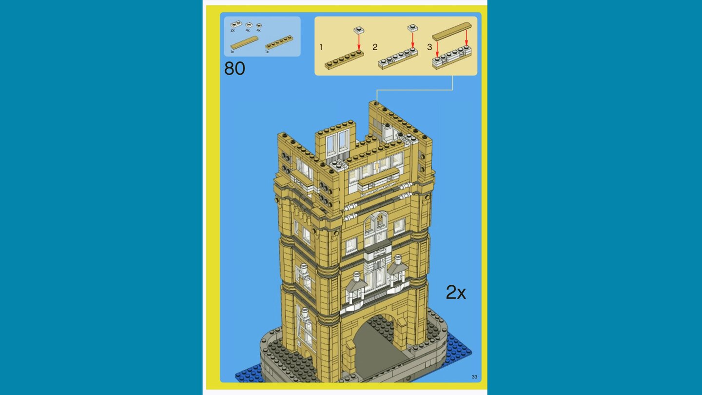 Quell des geteilten Leids ist Reddit. Dort hat der Klemmbaustein-Fan National-Stick-4082 ein Bild aus seiner Anleitung mit Gleichgesinnten geteilt. Darauf zu sehen ist die Instruktion, satte 31 Einernoppen-Stangen aufeinanderzustapeln.