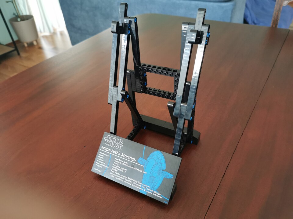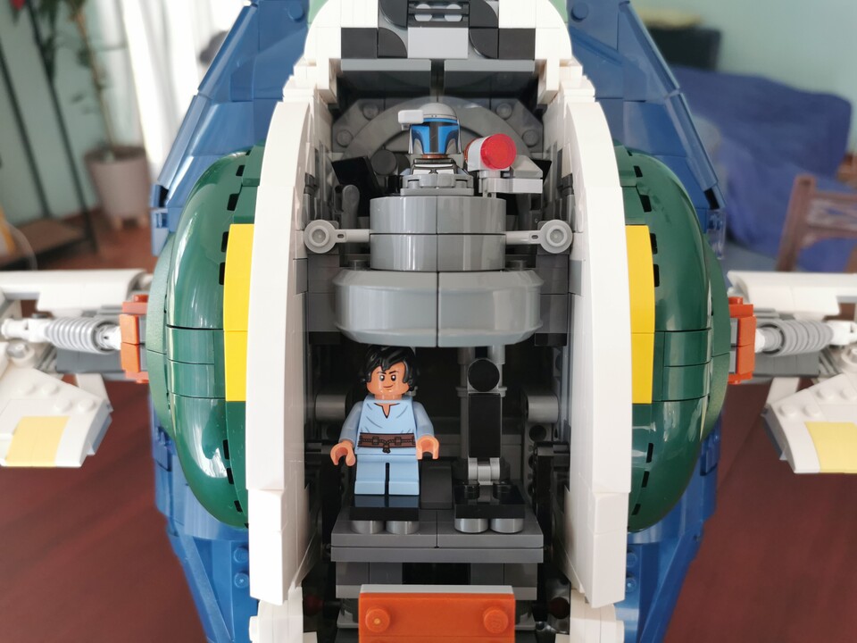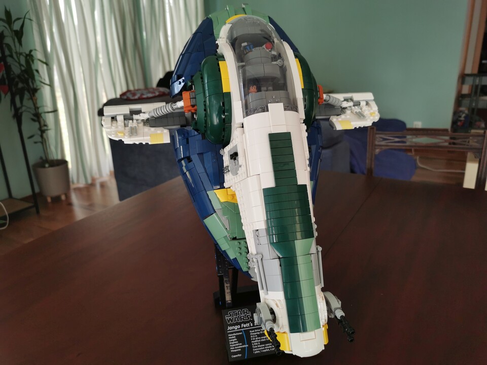 Der optische Gesamteindruck als Ausstellungsstück ist regelrecht erhaben. Selbst meine Frau, der eher süße Lego-Häuschen als dicke Sternenzerstörer gefallen, verleiht Jango Fetts Raumschiff das Prädikat »schön«.