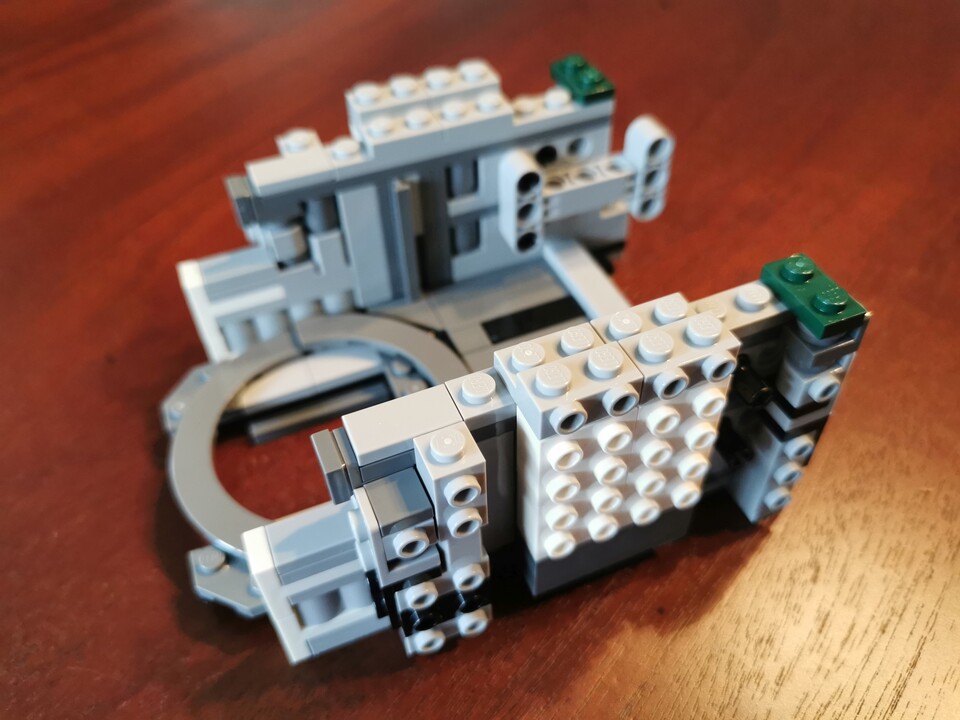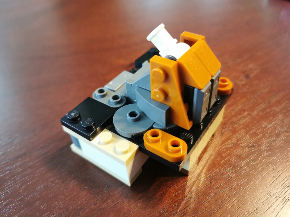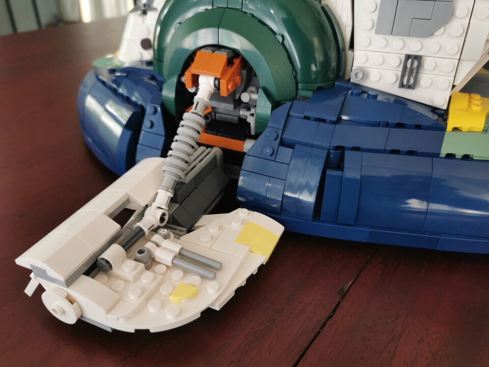 Bei einigen der Vorgängerversionen sorgte nämlich ein interner Mechanismus dafür, dass sich mit veränderter Raumschiffstellung (vertikal im Flug oder horizontal nach der Landung) auch die Ausrichtung von Cockpit und Pilotensitz veränderte. Bei Set 75409 bewegen sich dagegen nur die kleinen Flügel in Lande- und Flugposition.