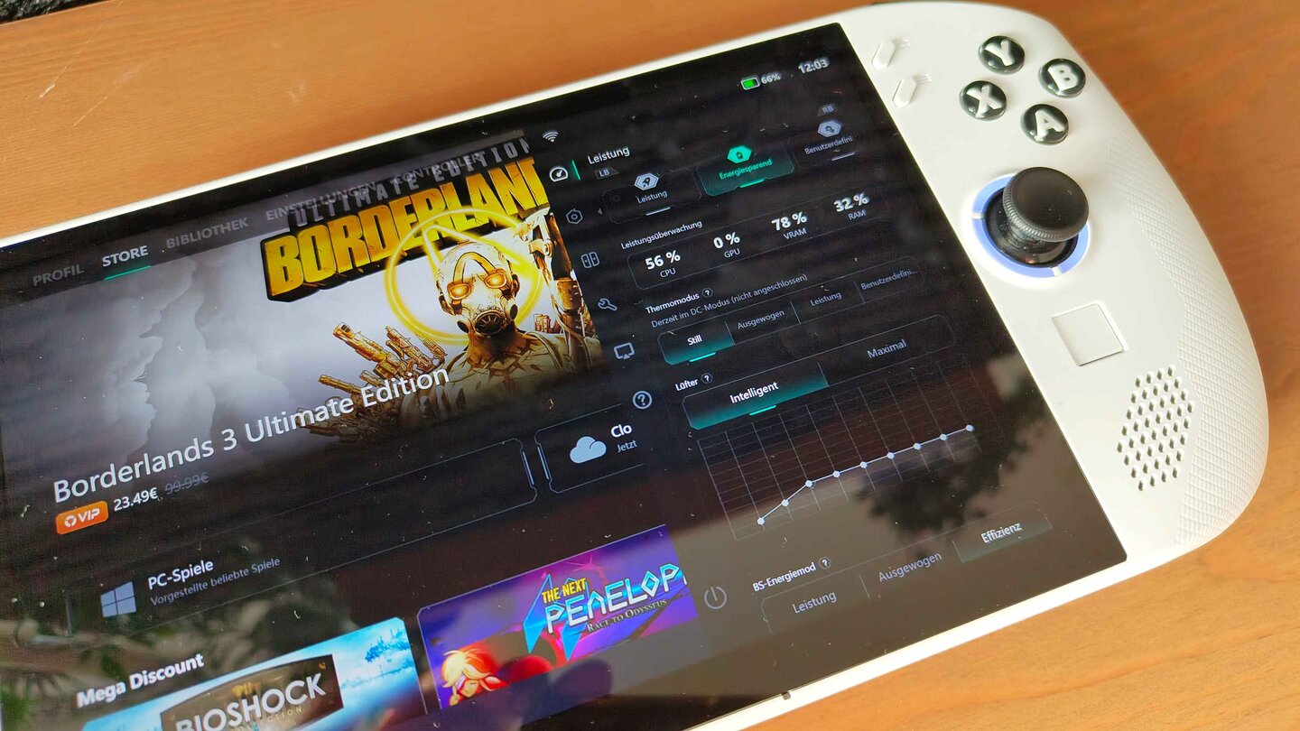 In der Praxis macht das allerdings nur wenig aus. Wie bei anderen Gaming-Handhelds in dieser Preisklasse ist beim Spielen von grafisch anspruchsvollen Titeln schnell Schluss.