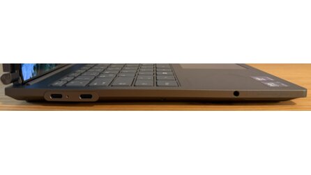 Bei den Anschlüssen zeigt sich der Hersteller knausrig, neben dem üblichen 3,5-mm-Audio-Port gibt es noch zwei USB-C Thunderbolt 4- / USB4-Schnittstellen, das war es.