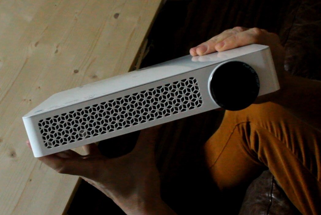 Im portablen Einsatzist das Fehlen der optischen Korrekturen ebenfalls ein Wermutstropfen. Oft muss in widriger Umgebung ein Kompromiss gefunden werden. Die geringe Variabilität des Gerätes ist hierfür alles andere als eine gute Voraussetzung. Zu bedenken gilt es allerdings, dass im mobilen Einsatz die pixelgenaue Bildwiedergabe weniger im Vordergrund steht. Viel relevanter scheinen da schon die Komplexität der Inbetriebnahme und Bedienung. Zusammen mit der Konnektivität sind das Teile der Stärken des Testgerätes. Im zugehörigen Testvideo wird das Zeitintervall zwischen Aufbau des Beamers und vollständiger Nutzbarkeit in fremder Umgebung gestoppt. Mit zwei Minuten, von Öffnen des Rucksacks über den Aufbau bis zur Wiedergabe der Urlaubsbilder von einem Miracast-fähigen Handy, wird hier eine Glanzleistung abgelegt.