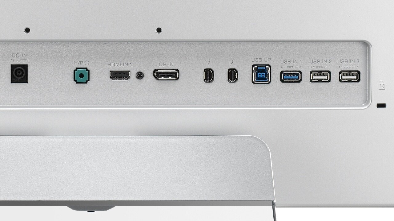 Mit der Splitscreen-Funktion können Sie den Bildschirm sogar in bis zu vier Bereiche aufteilen. Dabei zeigt der Monitor jeweils ein Bild an, das über Displayport, die beiden HDMI-Anschlüsse und von dem neuen Apple Mac Pro per Thunderbolt geliefert, dem zumindest aktuell dieser letzte Anschluss vorbehalten bleibt.