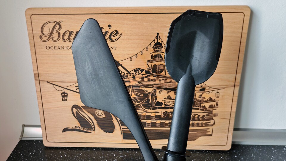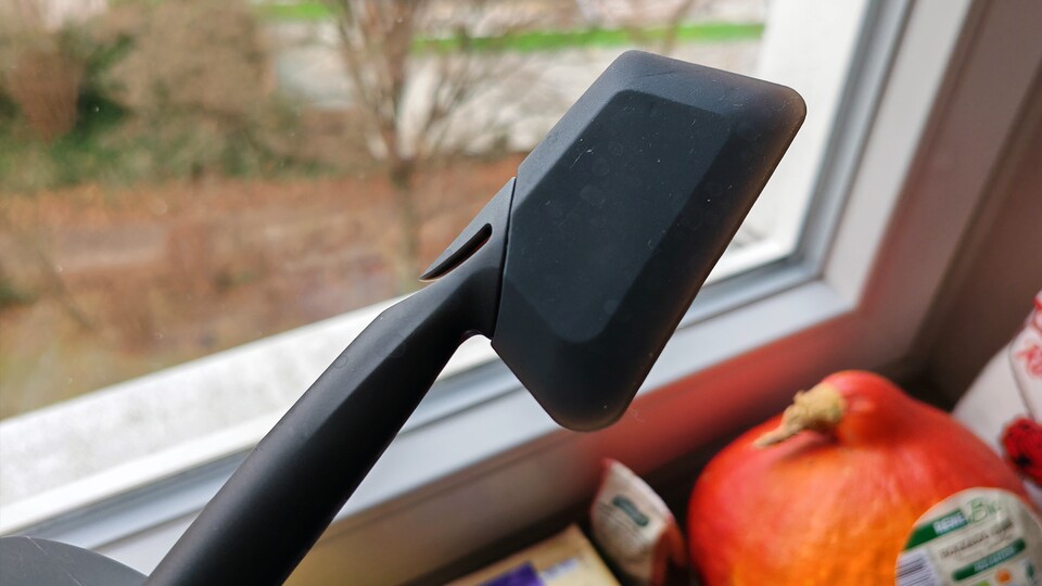 Noch so eine Kleinigkeit, die der Monsi richtig macht. Der Kopf des Spatels besteht aus Silikon, damit lässt sich der Topf viel besser auskratzen. Beim Cookit habe ich mich über das Hartplastik geärgert, weil man damit niemals alle Reste aus dem Topf bekommt.