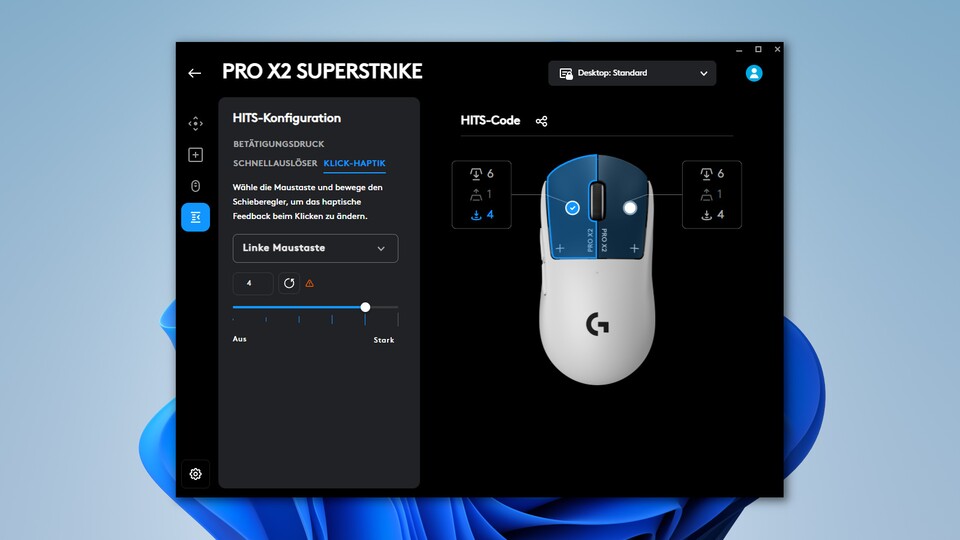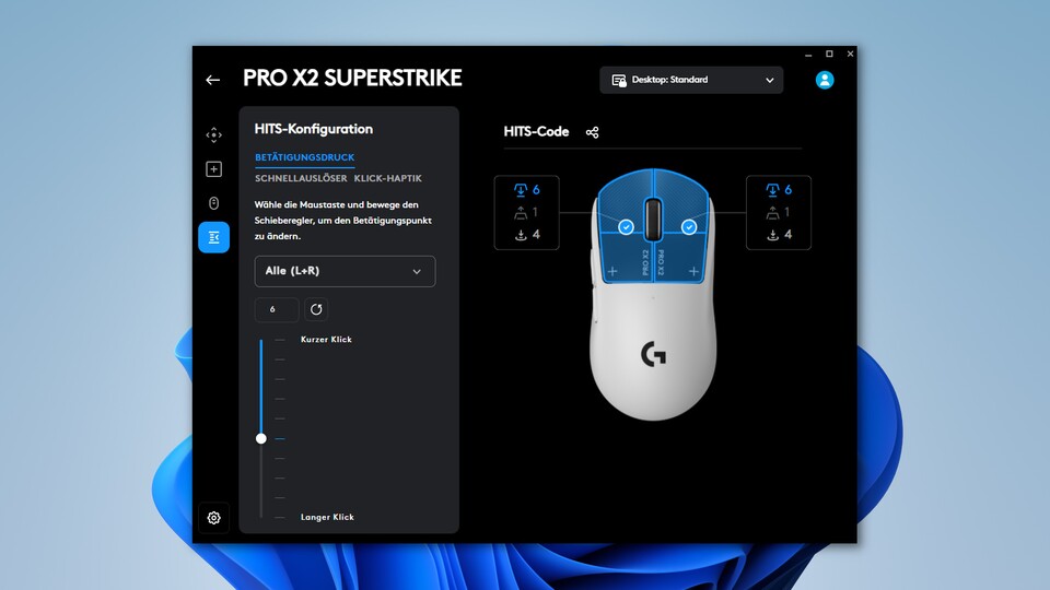 Beginnen wir mit den genauen Einstellungsmöglichkeiten der Pro X2 Superstrike über die G-Hub-Software. Dabei konzentrieren wir uns auf die besonderen Funktionen der Maus.