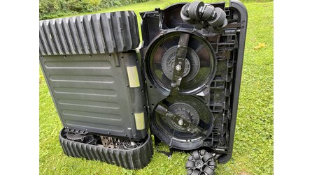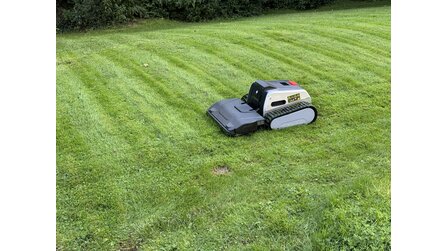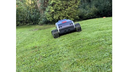 Im Test hat er heruntergefallene Äpfel zuverlässig in kleine Stücke zerlegt. Das spart Zeit und Nerven - ein Feature, das tatsächlich einzigartig wirkt. Hin und wieder werden Äpfel noch als Hindernis erkannt. Dann stoppt der Roboter abrupt und fährt in eine andere Richtung weiter. Das könnt ihr auch im Video sehen: