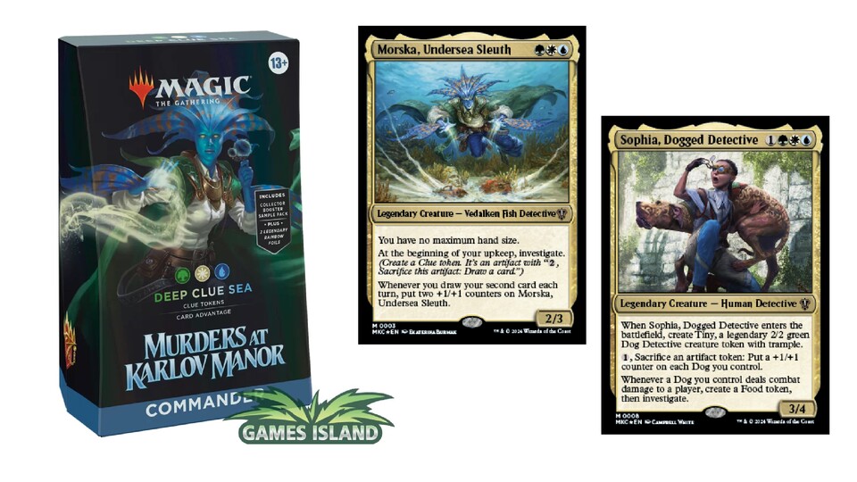 Ob Anfänger oder Veteran, die vorgebauten Commander Decks sind für alle Magic-Spieler mehr als nur einen Blick wert. Alle vier haben eine der spannenden Mechaniken aus dem neuesten Set, Murder at Karlov Manor, und können auch mit selbst gebauten Decks mithalten. Wenn ihr nach einem Einstiegspunkt gesucht habt – hier ist er!